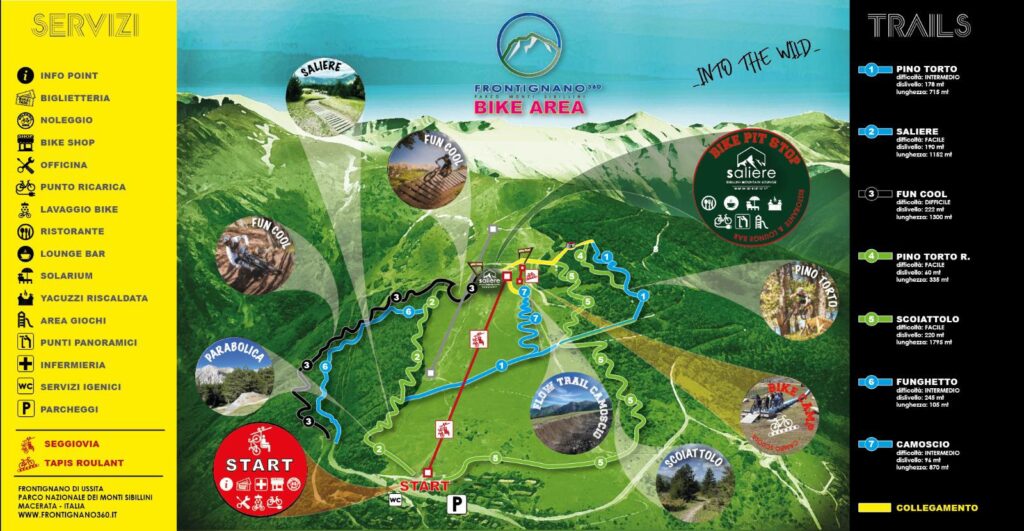 L’intera Bike Area si sviluppa su un dislivello di 1000 metri e comprende: